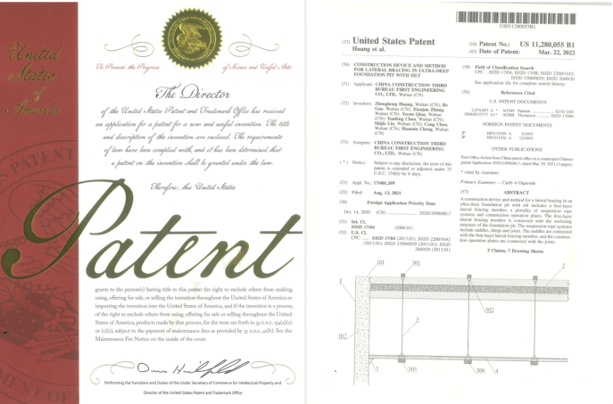 超深淤泥基坑横支撑施工装置及施工方法(局首个美国发明专利)
