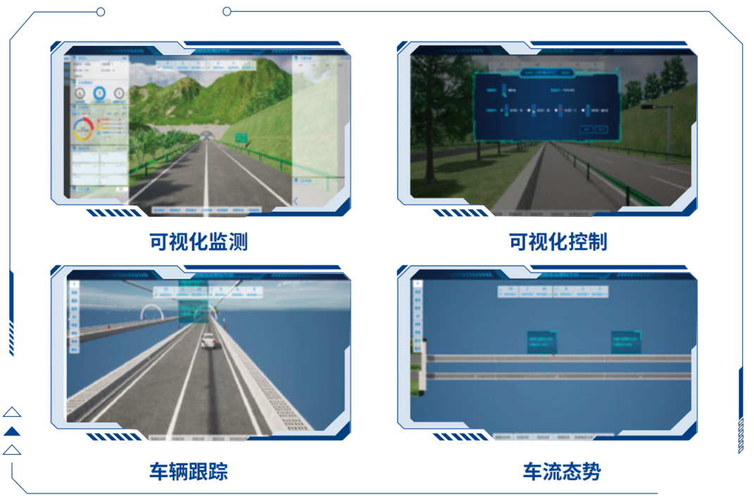数据融合与模型构建,可视化监测与管控隧道数字孪生系统依托智慧隧道综合管控平台和智能控制系统,将隧道设施设备进行三维建模和标注,同时接入设备运维监测数据,在3D模型中直观展示隧道设备状态、事件信息、车流态势及设备控制操作。需要查找设备和事件时,可基于三维场景设备和事件的精准定位,一键查看和控制设备。实现隧道运行状态统计分析、异常设备快速定位、事件告警快速定位及车流态势实时呈现。